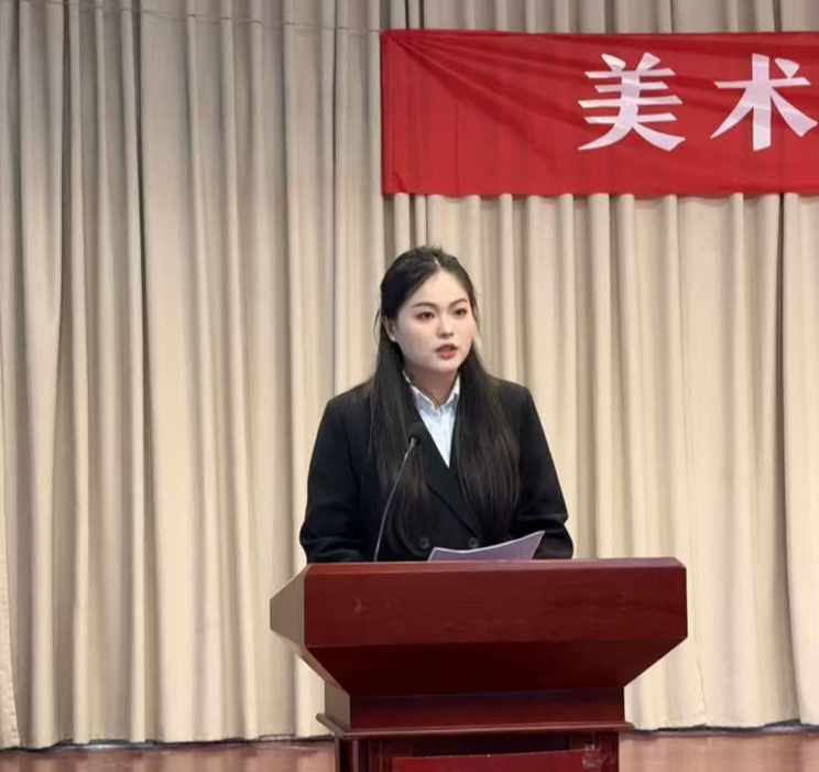 2023级美术学专业在校生代表丁明宇同学围绕 “探索”、“连接”、“成长” 关键词,鼓励大家跳出舒适区、搭建真诚的人际关系,从被动接受转向主动对自己负责,平衡学业与生活。